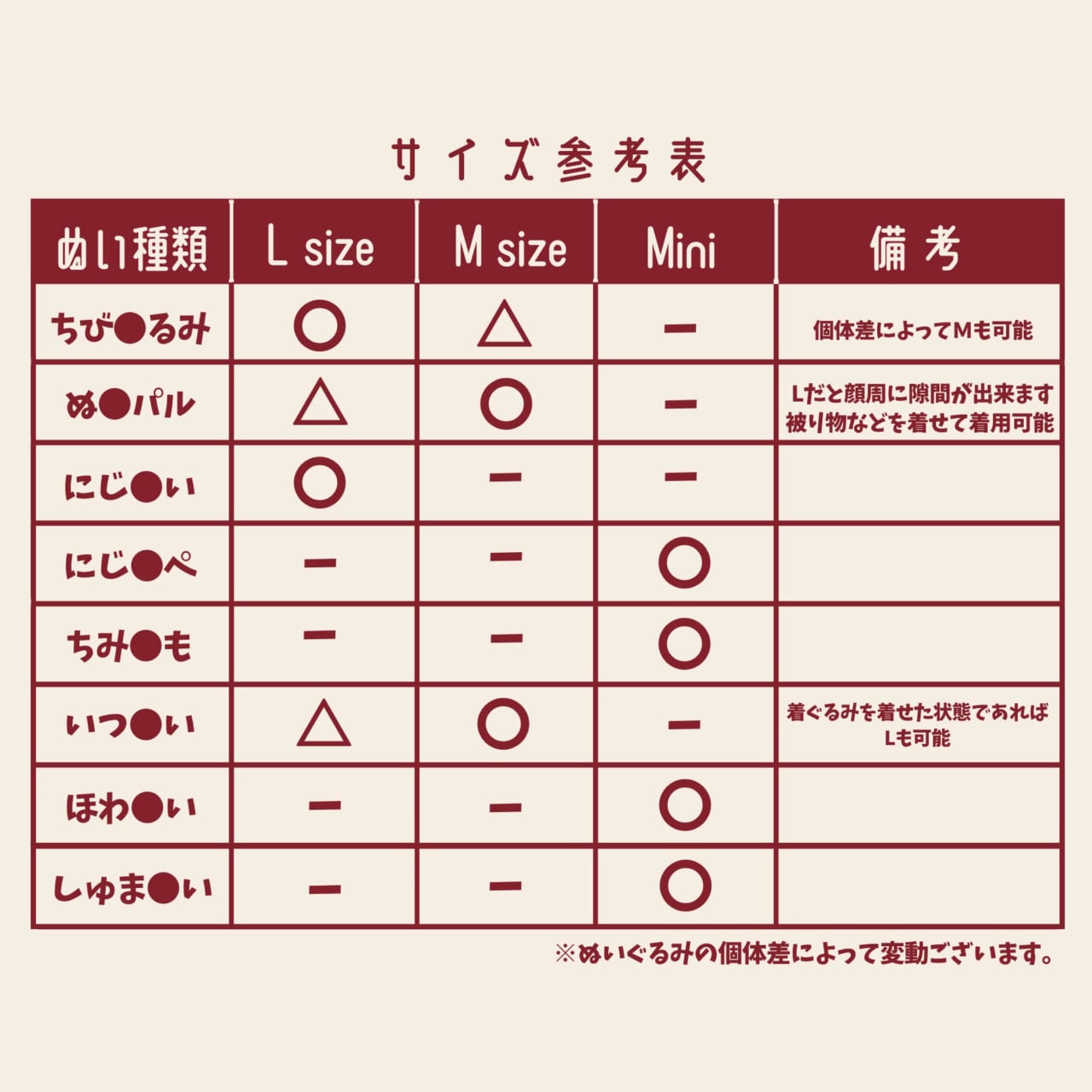 ご購入前に必ずサイズ表記をご確認ください。